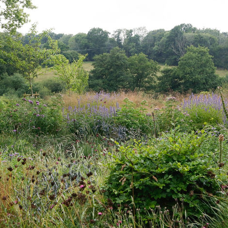 The garden remains very much a work in progress, with future plans including wildflower meadows and an orchard, and further development of the pool area. As part of the establishment process, protective rabbit fencing has been installed around new planting this spring (2025); this will be removed next year once the plants are strong enough to thrive unaided.